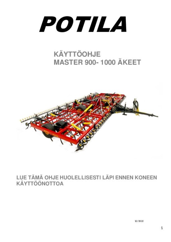 Master 900-1000 Operating Instructions - Finnish
