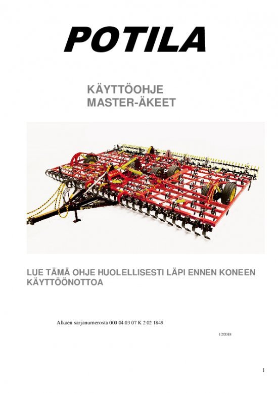 Master Operating Instructions - Finnish